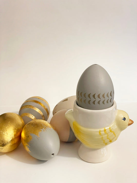 Set of 6 Grey and Gold Accent Plastic Eggs
